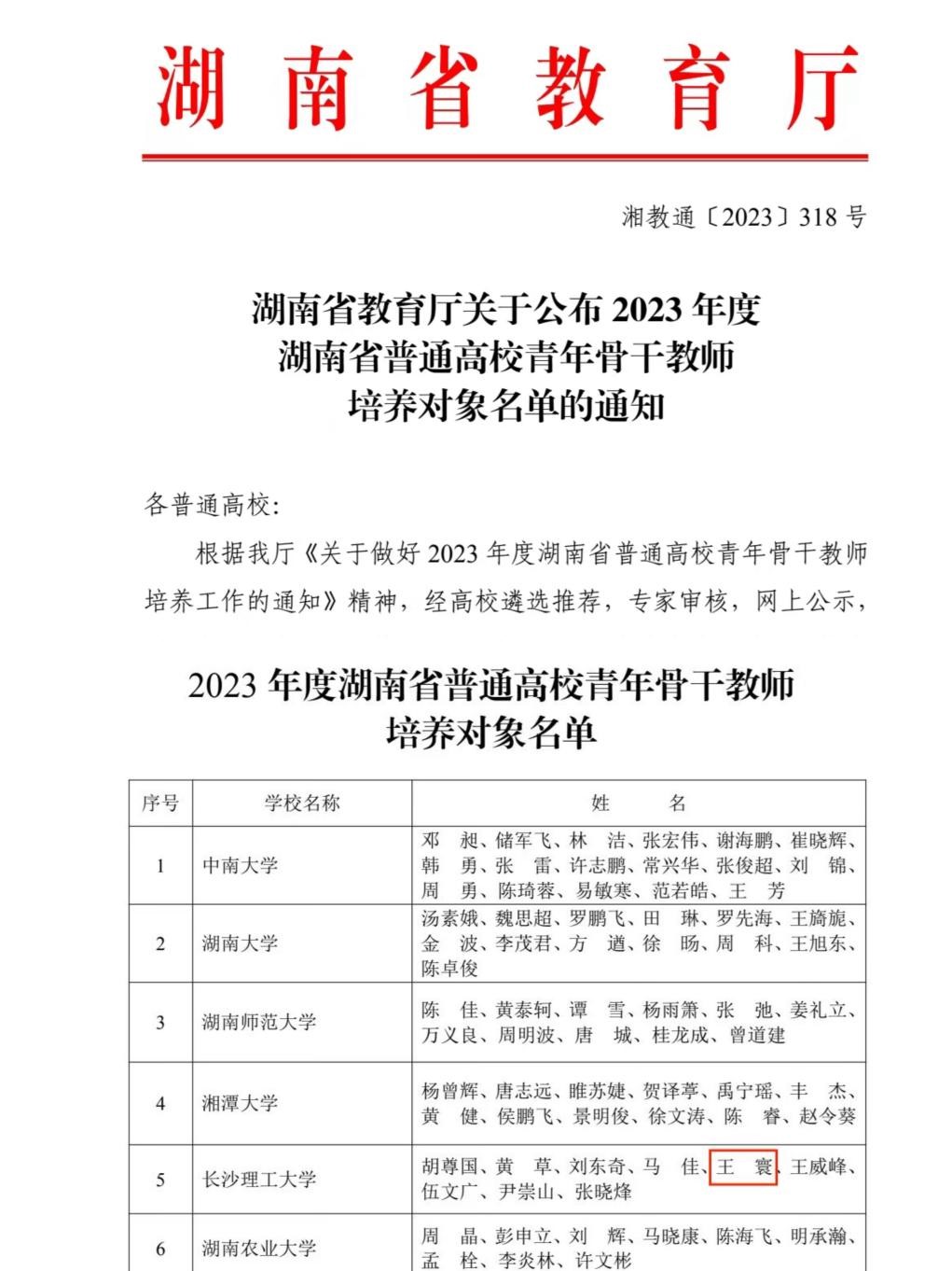 在同事们眼中,王寰老师也是一位勤奋工作、无私奉献的好老师。她的教学方法独特,深受学生们的喜爱和尊敬。她对待工作认真负责,对待同事热情友好,赢得了大家的广泛赞誉和尊重。2023年11月,王寰老师荣获“湖南省高等院校青年骨干教师”称号。