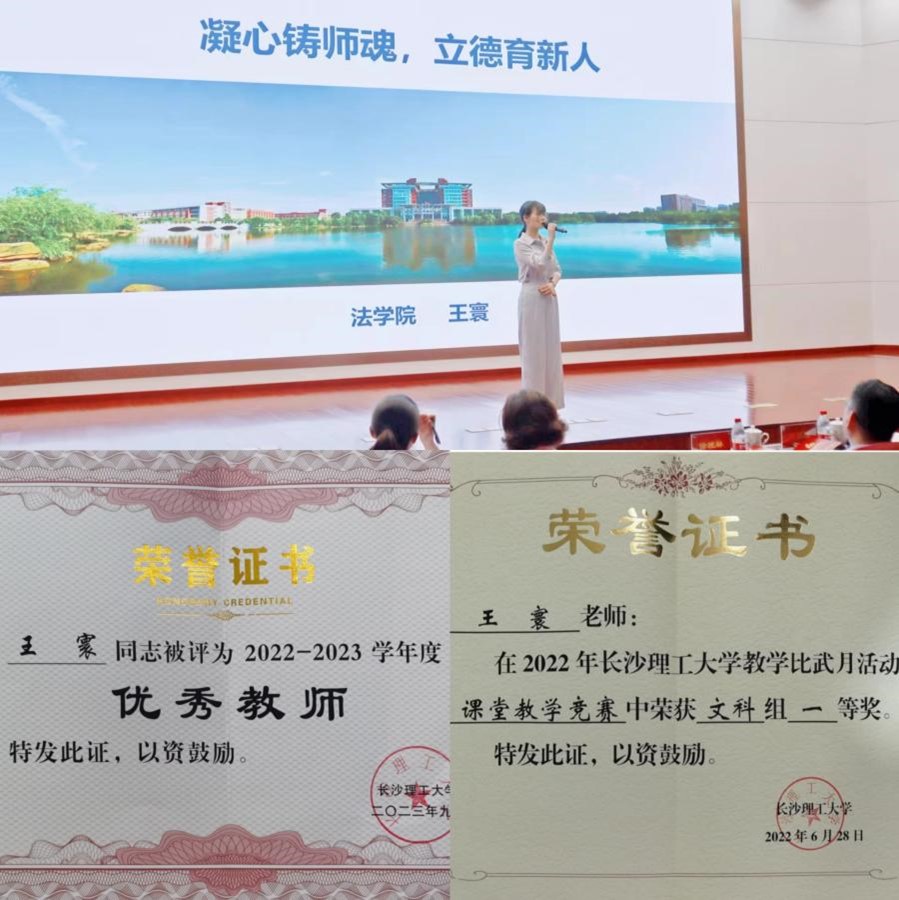 王寰老师不仅在教书育人方面表现出色,还具有高度的政治觉悟和党性原则。她深刻理解党的教育方针,始终坚持以立德树人为己任,积极投身于教育教学改革和学术研究工作。她曾两次被评为法学院“优秀共产党员”,并荣获“2023年度开云kaiyun体育优秀共产党员”称号。这些荣誉充分展示了她在党性原则和政治觉悟方面的坚定立场和优异表现。