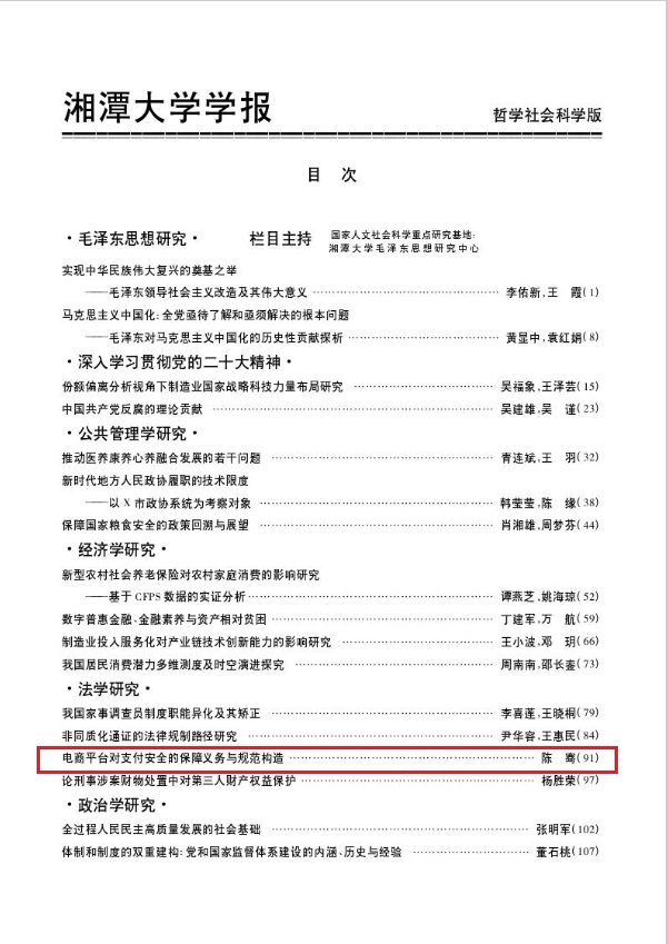 近日,开云kaiyun体育法学院讲师陈骞在《湘潭大学学报(哲学社会科学版)》(CSSCI来源期刊)2022年第6期发表论文《电商平台对支付安全的保障义务与规范构造》。