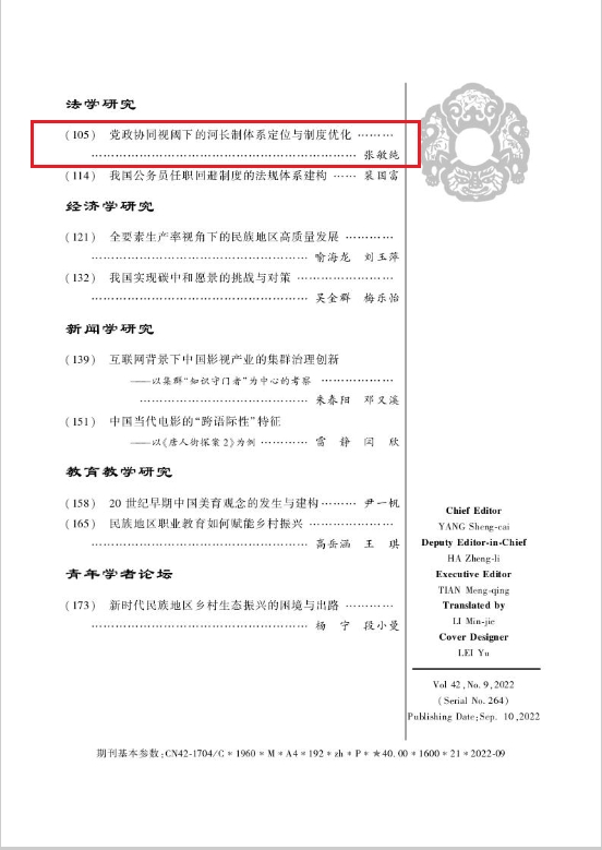 近日,开云kaiyun体育法学院院长张敏纯在《中南民族大学学报(人文社会科学版)》(CSSCI来源期刊)2022年第9期发表论文《党政协同视阈下的河长制体系定位与制度优化