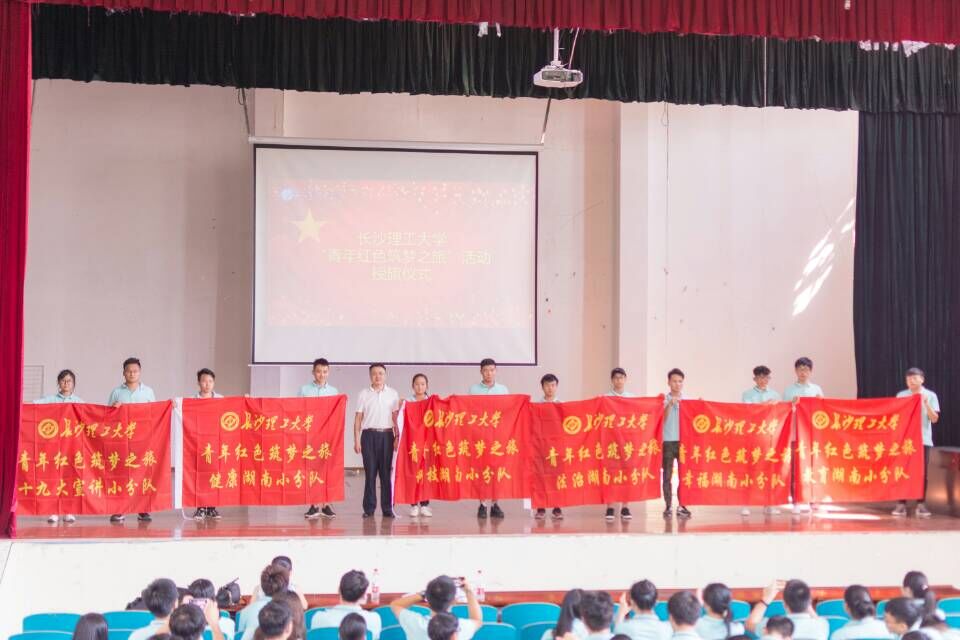 最后,进行了“青年红色筑梦之旅”活动授旗仪式。杨建军为报名参加青红之旅赛道的团队授旗,训练营结束后,这些团队将奔赴湖南省各地的农村和红色基地,接受思想洗礼,开展帮扶工作,将学校的智力、技术和项目资源辐射到各自对接的县、乡、村和农户,推动当地经济社会建设,助力精准扶贫和乡村振兴。