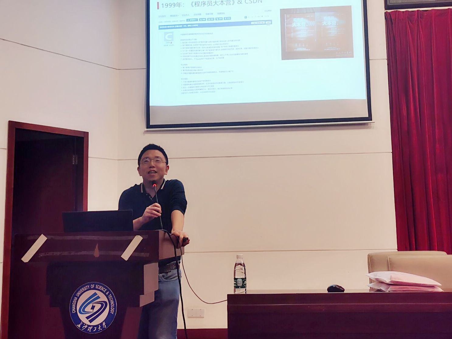 11月5日晚,由创新创业教育学院、计算机与通信工程学院联合举办的创新创业专题报告会在开云官网云塘校区图书馆学术报告厅举行,本期报告会的主题为“中国开发者的黄金十年及我的创业经历”。报告会的主讲嘉宾是CSDN创始人兼董事长、极客帮创投创始合伙人蒋涛。CSDN副总裁李超,以及创新创业教育学院和计算机与通信工程学院有关负责人出席,全校360余名学生参与了此次报告会。