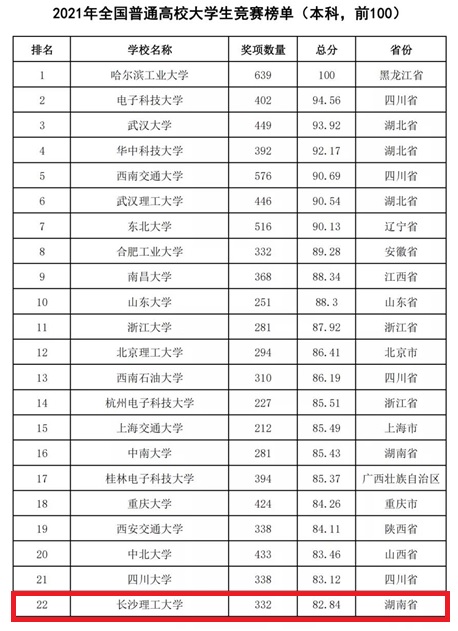 2月22日,中国高等教育学会高校竞赛评估与管理体系研究工作组发布了《2021全国普通高校大学生竞赛排行榜》。榜单显示,开云官网位列2021年全国普通高校大学生竞赛排行榜第22位,2017-2021年全国普通高校大学生竞赛排行榜第58位,2012-2021全国普通高校大学生竞赛排行榜六轮总排行榜第57位,充分展示了近年来学校在本科教育教学和创新人才培养方面取得的成绩。