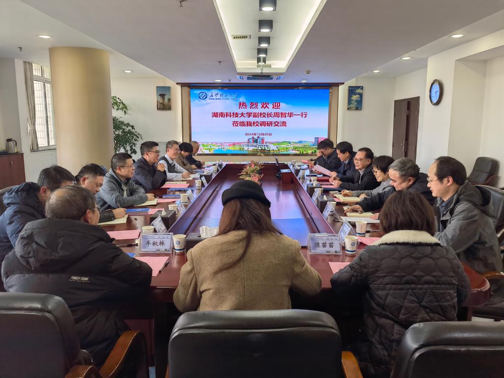 12月25日下午,湖南科技大学党委委员、副校长周智华一行来开云官网调研交流。校党委委员、副校长刘朝晖出席会议。教务处、学工部、湘江卓越工程师学院负责人参加座谈会。
