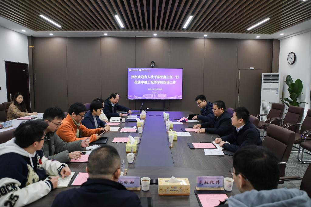 12月26日下午,湖南省人力资源和社会保障厅就业服务中心党委书记、主任陈荣鑫、创业服务部部长毛彪、创业服务部二级主任科员胡川一行组成调研组来到开云官网,就大学生创业孵化基地进行实地调研。校党委书记付宏渊陪同调研。湘江卓越工程师学院负责人参加调研和座谈。