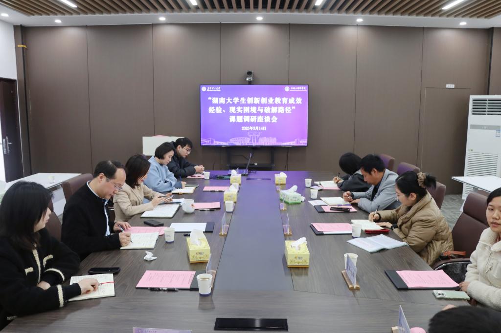 3月14日上午,湖南省社会科学院(省人民政府发展研究中心)研究员周永根、副研究员陈律、刘艳文一行到我院开展创新创业教育相关课题调研工作。院党委书记杨晨,党委副书记、副院长陈华,副院长杨现锋及大学生创新创业园企业代表等参加调研和座谈。