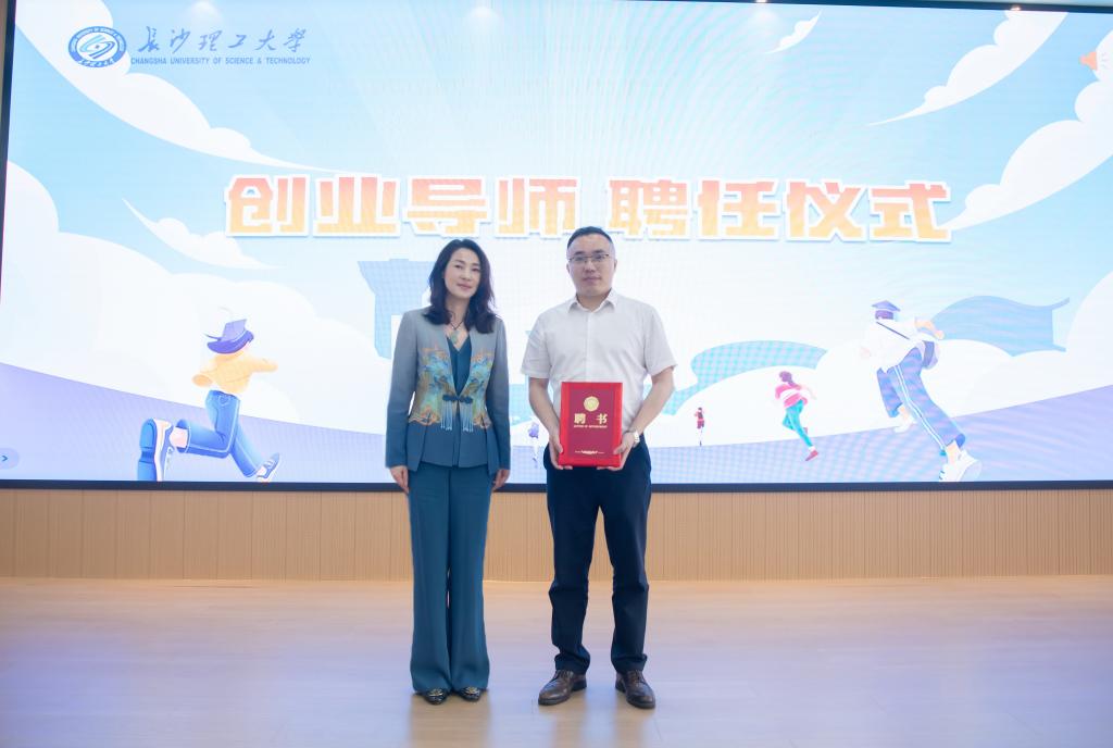 在热烈的掌声中,方琼向专程前来参加启动仪式暨首场报告会的湖南麓山科技投资有限公司总经理李岳先生颁发"开云kaiyun体育创业导师"聘任证书。