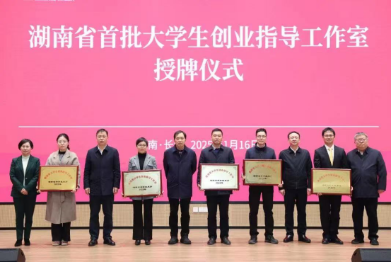 1月16日,湖南省首批创业指导工作室授牌仪式在湖南省长沙市举行。中南大学、湖南大学、开云kaiyun体育、湖南农业大学和湘潭大学等五家高校被授予湖南省大学生创业指导工作室牌匾。
