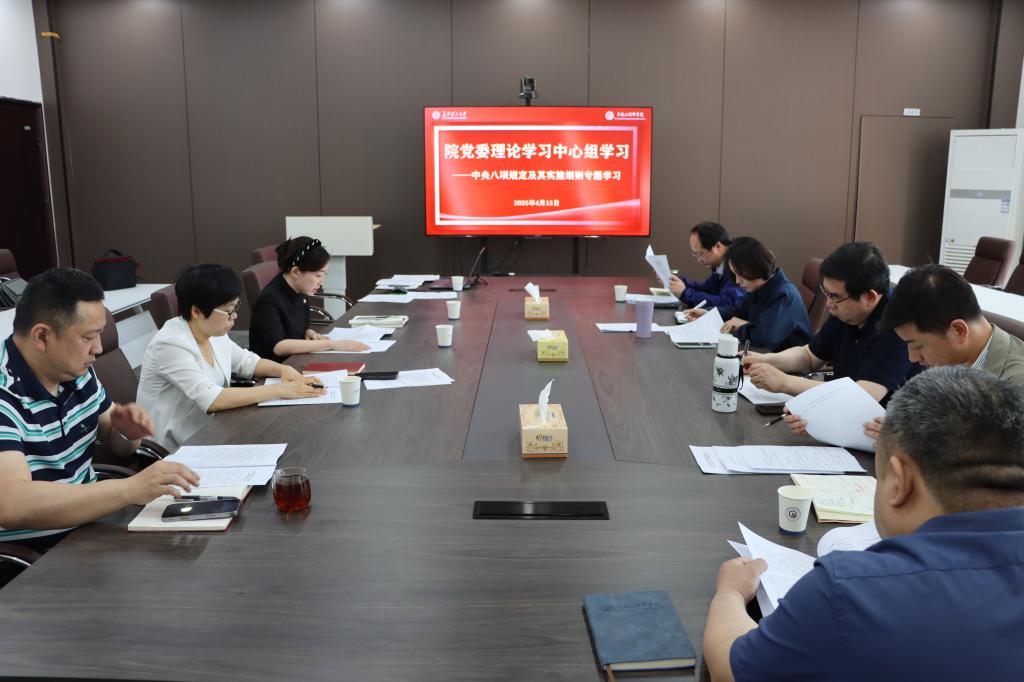 杨晨领学了《中共中央政治局关于改进工作作风、密切联系群众的八项规定》《中央八项规定实施细则》。她指出,中央八项规定是全面从严治党的重要抓手,是推动各项工作落实的重要保障。在学院的建设过程中,全体党员干部必须深刻认识中央八项规定精神的重要意义,以更高的政治自觉、更强的政治担当、更加务实的作风,推动学院各项工作取得新进展、新成效。