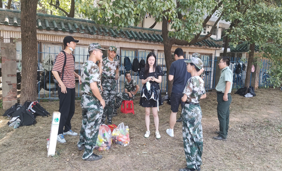 两位老师向新生辅导员了解新生军训的总体情况,关心学生的身体状况。在训练休息时间深入学生之中与学生交流谈话,同时在炎炎夏日给大家送来清凉饮品。