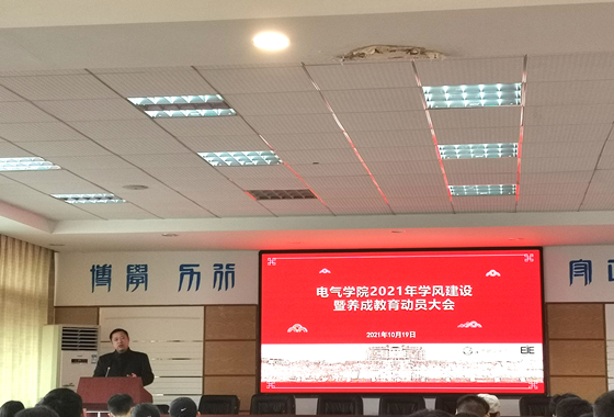 为营造良好的学习氛围,激发学生的学习热情,创造和谐的校园文化环境,10月19日中午,电气学院于工一B503组织召开2021年学风建设暨养成教育动员大会。电气学院党委副书记任艮丰,学工办黄文韬、范凯出席,学风督导队、文明督导队全体成员及学生代表参加会议。