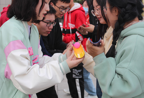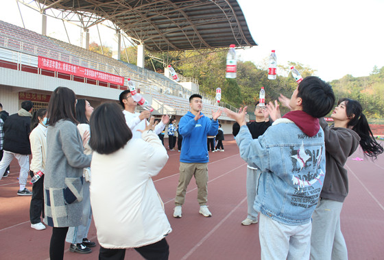 活动开始,团学干部被随机分为15个小组,各小组成员通过团结合作完成了“摸石过河”、“乒乓球传递”、“十人九足”、“守护气球”、“红色故事传递”等素质拓展活动,通过小游戏的形式增强了团队的荣誉感、归属感。其中,“红色故事传递”以独特的方式展现了同学间的默契协作与合作精神。小组成员记忆红色故事内容,并向下一位成员复述故事。小游戏以红色故事为切入点传承了红色基因,将红色文化传递进每一个人的心里,提高了团学干部的记忆力与沟通能力。活动结束时,第九组获得一等奖,第十、十五组获得二等奖,第五、六、十一和十二组获得三等奖。