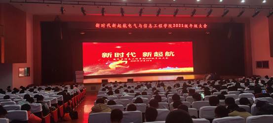12月8日晚,电气学院在五教大礼堂召开以“新时代,新起航”为主题的2021级年级大会。各班班主任,2021级辅导员王迪,张一鸣悉数到场。