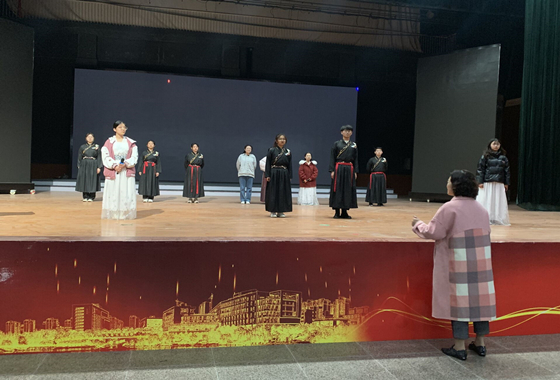 在排练过程中,大家克服重重困难,严格要求,一个简单的动作多次练习,做到整齐划一;为了能有更好效果,一遍又一遍地读,寻找最合适的朗诵方式;为了向大家展现更加完美的作品,经常练习到晚上十一点。排练中期,学院邀请专业老师进行指导,经过点拨,队员们受益匪浅,也更加充满信心。