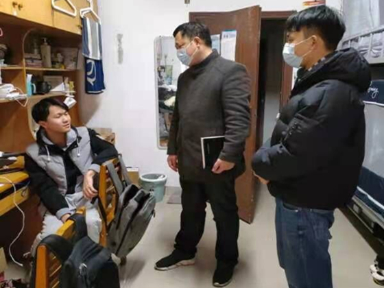 走访寝室期间,领导老师与学生们进行深入交谈,询问他们的相关情况及入住事宜,并在学习和生活方面给予一些建议,以便他们能够更快地从寒假中调整过来适应新学期。任艮丰强调了以下几点注意事项:一是要做到疫情防控不放松,严格遵守学校的日常管理、校门管理和活动管理,配合学校每天监测体温;二是要防范日常生活安全隐患,注意财产和人身安全;三是要调整作息与心态,制定学习计划,在新学期全方面提升自己,锤炼过硬本领。辅导员也来到本年级同学寝室,与同学们亲切交谈,了解同学们的校情况、寝室卫生和新学期准备工作等情况,并嘱咐大家在宿舍里要相互关心、相互帮助,以崭新的精神面貌投入到学习生活中。