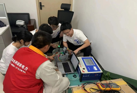 时值伏天酷暑,高温保电成为电网公司的头等大事,电气学子们在韶山深度参与红外测温、用户巡视检查、现场设备调试运维等一线工作,助力迎峰度夏保供电工作。短短20天,实践队员完成线路巡查73条,红外测温20处,完成电表安装、更换10次,调查居民用电情况121户,推广“莲城电工”小程序、“网上国网”APP214户,整理用户档案材料1100余份……