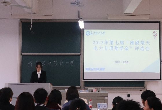 答辩开始前,主持人向参会人员简要介绍集团基本情况以及答辩流程与评分细则。“湘能楚天电力专项奖学金”分设服务奉献奖、学习标兵奖、学习进步奖、科技英才奖、文体特长奖以及优秀科研团队、优秀寝室、优秀学生团队奖。