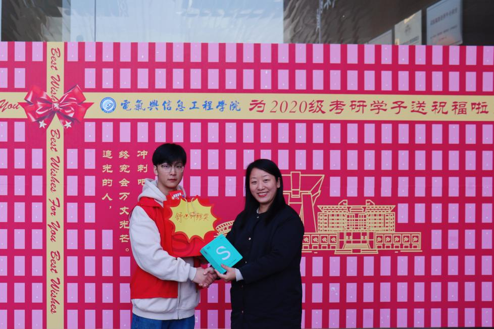 电气学院党委副书记陶双表示,临近考研,越来越多的学生出现焦虑的情绪,对此,学院高度重视、精心策划、师生齐出动,暖心为每位考研学生准备抽取惊喜盲盒的方式为考研学子加油鼓劲,希望同学们在考前积极调整,以平和的心态、饱满的精神状态应对考研。