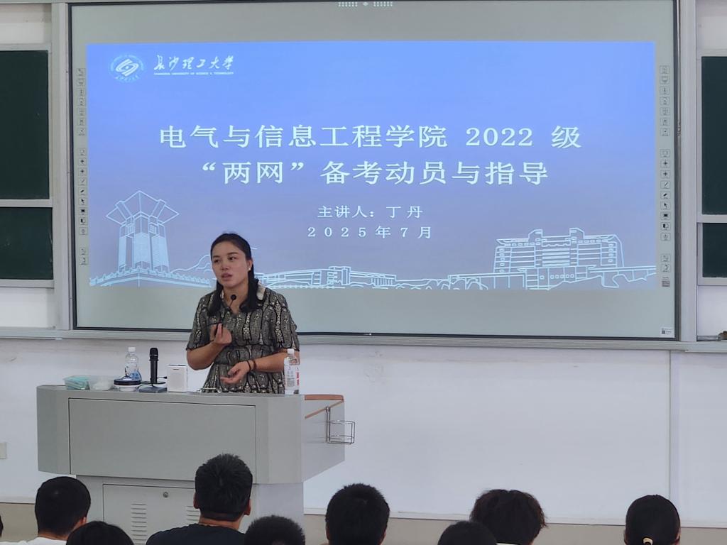 丁丹结合电力行业发展现状及新型电力系统建设的人才需求方向,以学院往届优秀毕业生在两网的成长为例,阐述了电气学子在两网广阔的发展空间。在备考策略上,她强调要重点掌握核心专业课程知识,利用暑期系统梳理历年两网考试真题,熟悉题型分布与命题规律;提醒大家密切关注两网招聘政策动态,提前准备简历材料;并注重培养逻辑推理、资料分析等综合能力,为后续笔试、面试打下坚实基础。丁丹还结合自身学习经验,勉励毕业生树立终身学习理念,保持谦虚进取之心,持续提升自我。