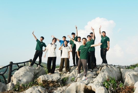 在万马奔腾石林,上千个石柱石芽向着同一个方向排列,犹如万马奔腾,气势磅礴,石林周边植被繁茂,绿草如茵,两者相互映衬构成绝美画卷。生于兹长于兹的队员苏玉辰回忆道:“小时候对于锡矿山的印象只有裸露的山体和稀疏的植被,通过这次参观我才惊奇地发现,生态治理后绿野取代了荒山,作为冷水江本地人我倍感欣慰与自豪。”面对眼前的奇景,队员们纷纷按下快门,将这幅生态奇迹定格珍藏。