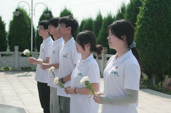 在庄严肃穆的革命烈士纪念碑前,实践队员们身着统一服装,整齐列队。他们手捧洁白的菊花,向烈士纪念碑行三鞠躬礼,并集体默哀三分钟,向为民族独立和人民解放事业英勇献身的革命先烈表达深切缅怀与崇高敬意。随后,团队代表敬献花篮,全体队员缓步绕行纪念碑一周,仔细瞻仰碑文记载的英雄事迹。队员们还前往英雄陵墓区,细心擦拭墓碑并献上鲜花,向革命英烈行注目礼。