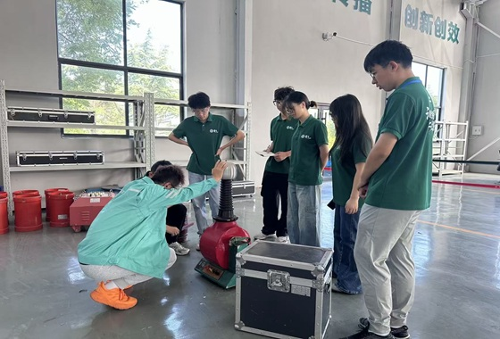 上午,电气试验班成员钟海涛带领同学们参观实训区。他重点介绍了高压试验区的设备特性,结合真实案例强调《国家电网公司电力安全规程》的重要性,通过讲述因违规作业导致的事故教训,让实践队员们直观感受到“安全无小事”。随后,实践队员们在实验室亲手进行绝缘油检测实验,绝缘油作为主要的冷却介质在油浸式变压器中必不可少,同时它也有着绝缘、灭弧、防腐等重要作用,实践队员们通过绝缘油的检测实验,同时拓展学习了变压器冷却系统的运行原理。