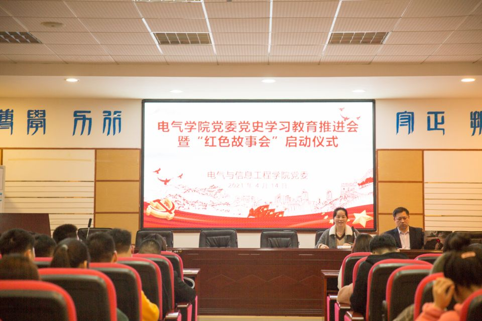 4月14日19:30,电气学院学生党史学习教育推进会暨“红色故事会”启动仪式在工科一号楼B503召开,学院党委副书记任艮丰、辅导员教师及120余名学生党员、干部参加,会议由学生党总支副书记邵巧艳主持。