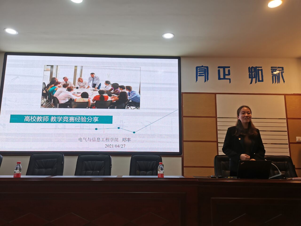 最后,省课堂教学竞赛一等奖、省创新教学竞赛一等奖获得者邓丰老师分享了课堂教学、教学竞赛的经验。