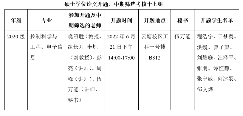 2022年研究生学位论文开题及中期筛选考核安排表(七)