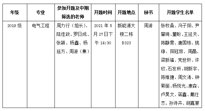 电气工程二组开题及中期筛选考核安排已公示,请大家提前填写好《开云kaiyun体育研究生论文开题报告表》与《研究生中期筛选考核评定表》,做好答辩准备。