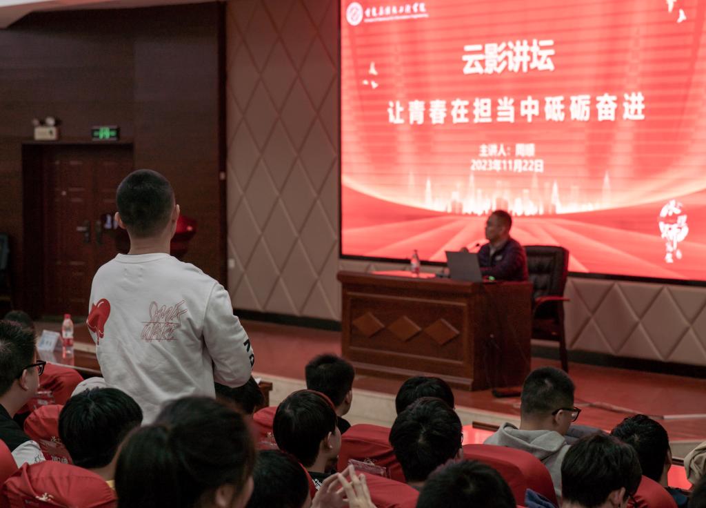 11月22日晚,全国优秀共产党员电气学院2017级优秀毕业生周顺做客云影讲坛,畅谈青年使命担当。校研工部部长闾兰、电气学院原党委书记符慧林、党委书记丁丹、副书记陶双、副院长王文、关工委副主任罗玉雄、周羽生教授,电气学院260余名研究生一同参加。