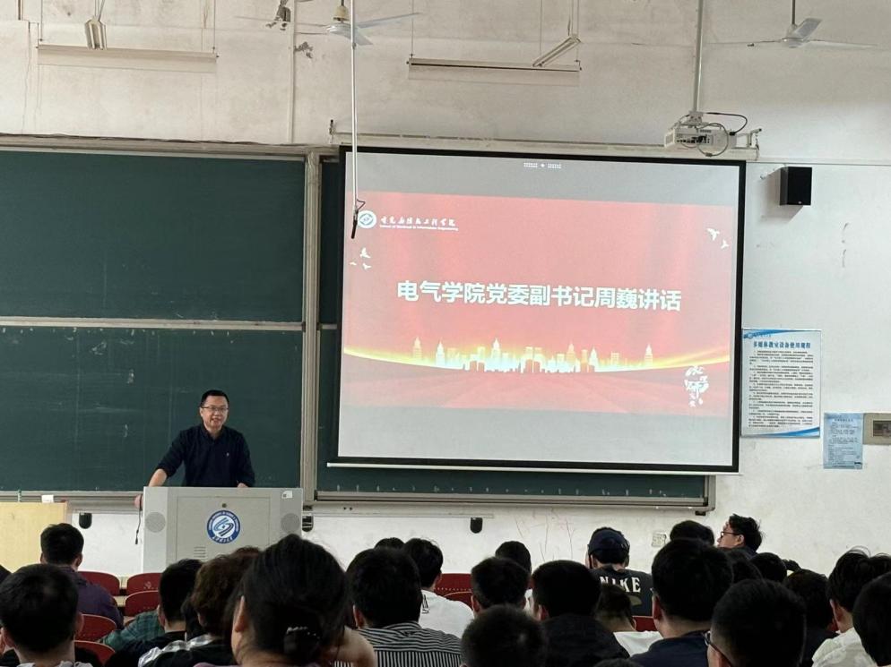 2024年6月6日下午,电气学院在工一A106召开2024届研究生毕业生教育大会,学院党委副书记周巍及全体毕业生一同出席。会议由研究生辅导员黄文韬主持。