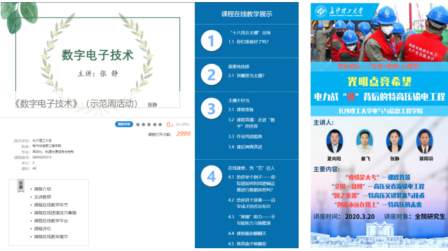自2月17日学校实施线上教学以来,系里为每位老师配备直播板书的手写数位板,全系教师迎难而上、积极投入,通过微信群开展讨论和交流,从直播平台的选择,到直播技术的应用,再到加强线上师生互动手段等方面,相互取长补短,保证了线上教学的顺利开展。老党员、老教授李茂军与系负责人贺勇、刘铮一道坚持随堂听课,开展线上督导,指导年轻教师改进教学方式方法,确保了全系课堂教学、毕业论文指导的有序开展。张静老师主讲的《数字电子技术》课程获评开云kaiyun体育在线教学示范周“最喜爱的线上课程”;参与打造和主讲的“党员讲坛”《光明点亮希望——电力战“疫”背后的特高压输电工程》面向全院研究生和本科生云上开课,直播课堂人数达6000余人,被新湖南、红网等多家媒体报道,成为学校战“疫”课程思政的亮点。