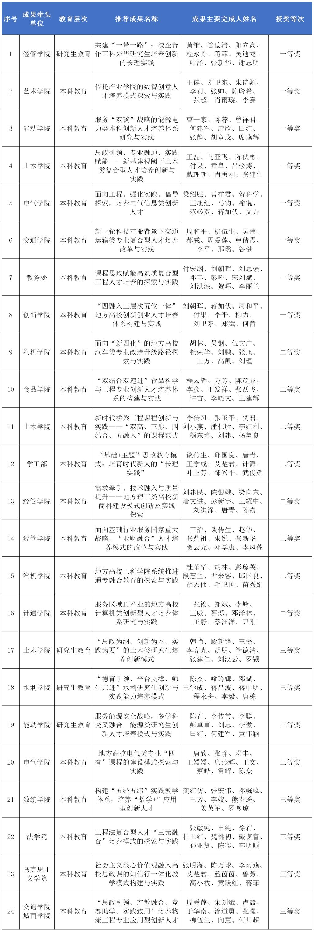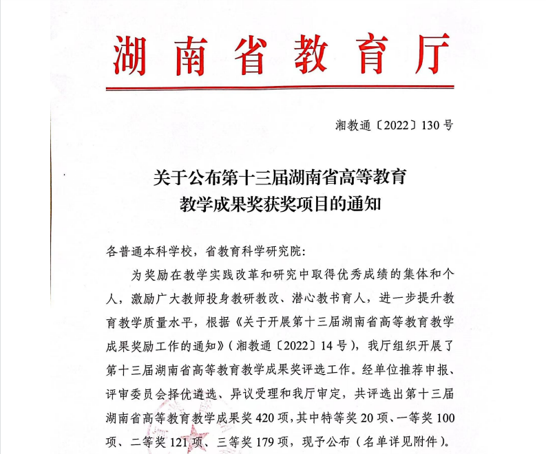 在本届湖南省高等教育教学成果奖评选中,开云官网共获得成果奖24项(含一等奖8项、二等奖8项、三等奖8项)。