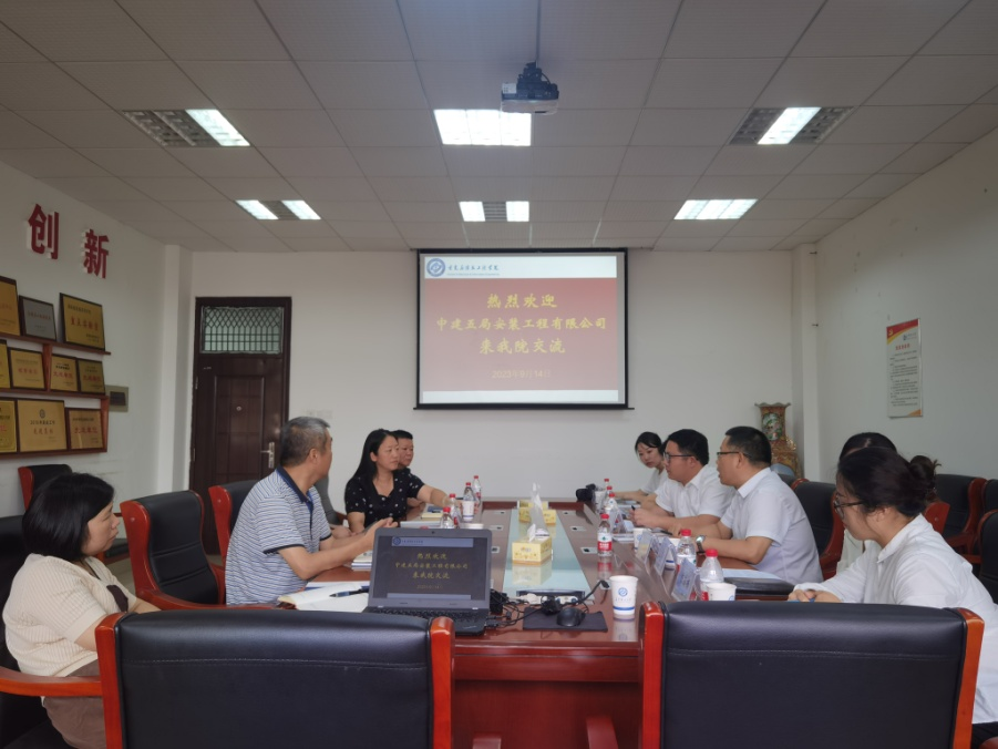 为进一步加强校企协同,积极推动双方在人才培养、党建联学联建、科技创新等方面的交流合作。9月14日上午,中建五局安装工程公司党总支副书记、工会主席柳书明一行来我院交流洽谈。学院党委书记伍接朝副书记陶双及相关人员参加座谈会。