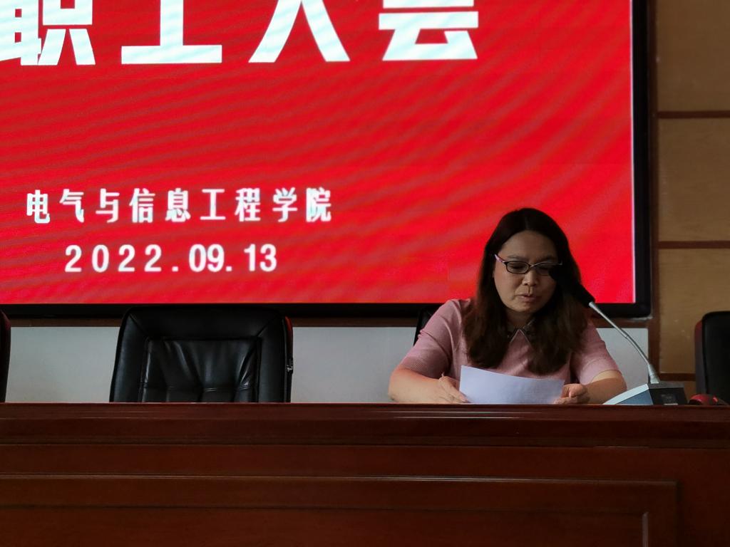 9月13日下午,学院在工一B503召开全院教职工大会。会议由常务副院长杨洪明主持,学院党委书记伍接朝传达学校重要会议精神,部署秋季学期工作。