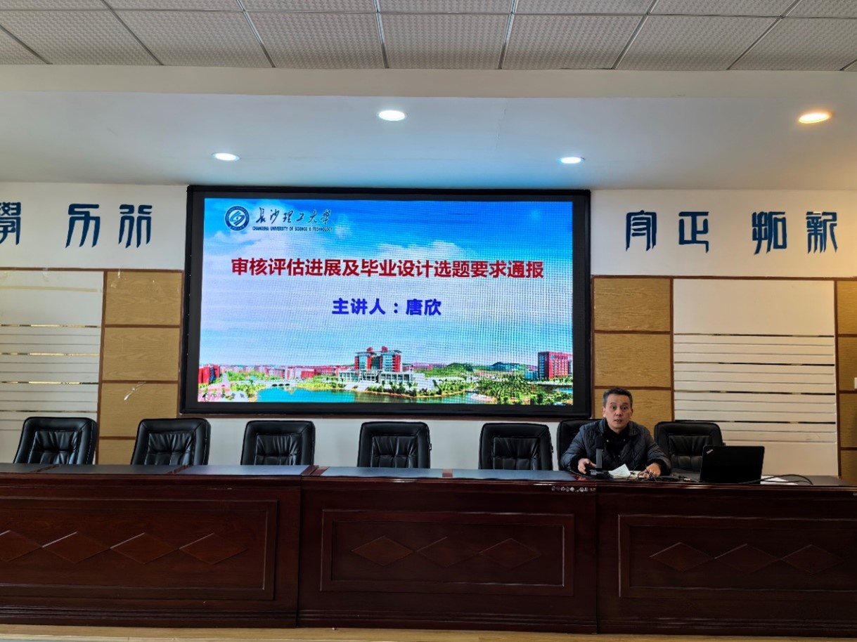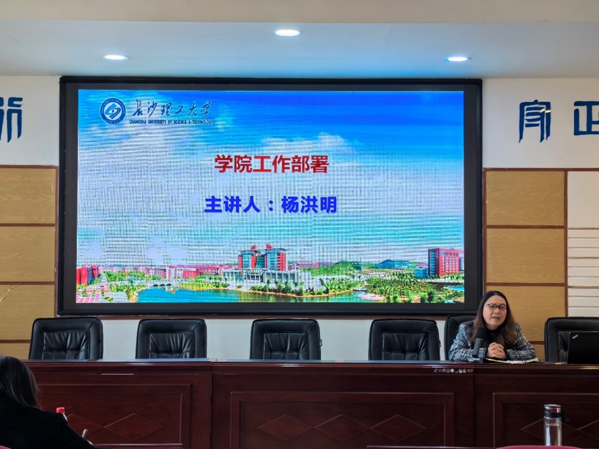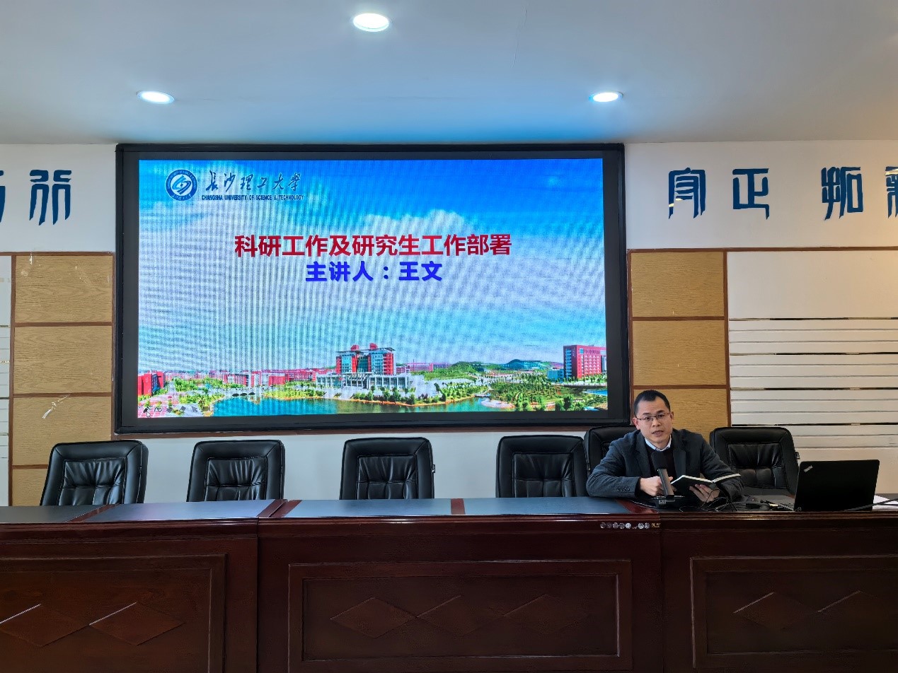 副院长唐欣对审核评估的进展以及毕业设计的选题要求进行通报。副院长王文对科研及研究生工作进行了部署,他汇报了研究生学位点核验材料的提交情况并详细安排了研究生中期答辩的工作,并针对科研工作列出了“三个一”的工作计划。