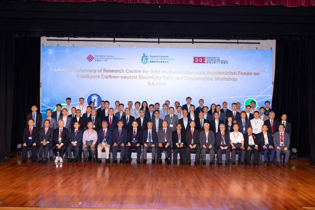 6月3日上午,研究中心成立仪式暨“碳中和与新型电力系统”院士论坛在香港理工大学蒋震剧院举行,香港理工大学电机及电子工程学系主任钟志勇教授主持,香港理工大学校长滕锦光致欢迎辞。香港特别行政区政府领导谢展寰、中电联秘书长郝英杰致开幕辞,中国南方电网公司总经理钱朝阳做主旨演讲。成立仪式结束后,中国工程院院士周孝信、薛禹胜、余贻鑫、程时杰等专家介绍了各自在碳中和目标与新型电力系统的研究经验。