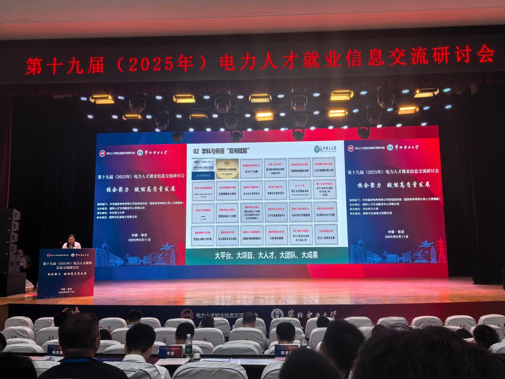9月11日,第十九届电力人才就业信息交流研讨会在华北电力大学保定校区举行。本次研讨会由国网人才交流服务中心有限公司主办,华北电力大学承办,国网河北省电力有限公司协办,来自国网直属单位、各省公司等54家电力企业和清华大学、浙江大学、武汉大学等34所院校共180余名代表参加大会。
