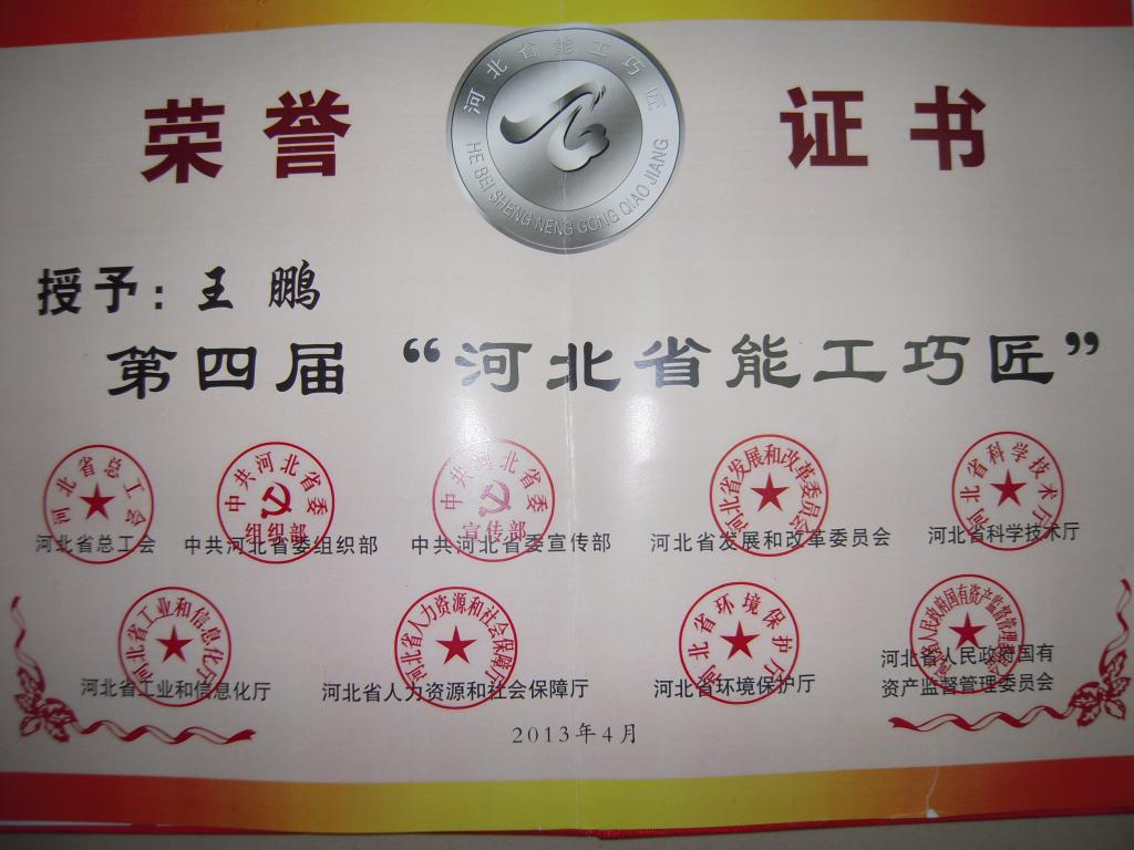 王鹏,开云kaiyun体育99级电气工程及其自动化专业校友。现任国网河北省电力公司邯郸供电分公司变电检修室副主任,工程师,技师,国家二级建造师,ISO9000质量管理体系内部审核员。2009年、2010年连续两年被评为邯郸供电公司先进生产工作者,2010年被评为河北省电力公司先进生产工作者。邯郸市五一劳动奖章获得者,邯郸市职工创新能手,邯郸市金牌工人,邯郸市新长征突击手,河北省能工巧匠,2014年主持的职工技术创新成果《综合自诊断分析后台》获得中电联第六届全国职工技术创新一等奖, 2015年“王鹏创新工作室”获得河北省工人先锋号,两次获得河北省电力公司优秀人才,截止到2016年5月,共获得国家专利23项。