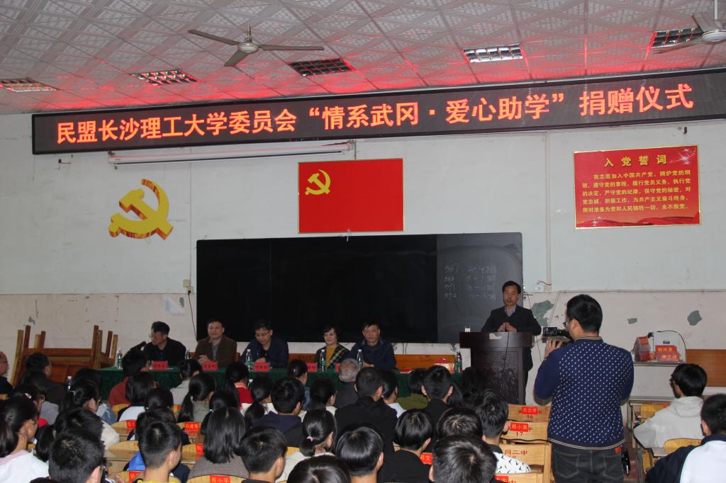 4月13日,民盟开云kaiyun体育委员会到武冈二中开展“情系武冈 爱心助学”公益行动,受到武冈二中师生的热烈欢迎。