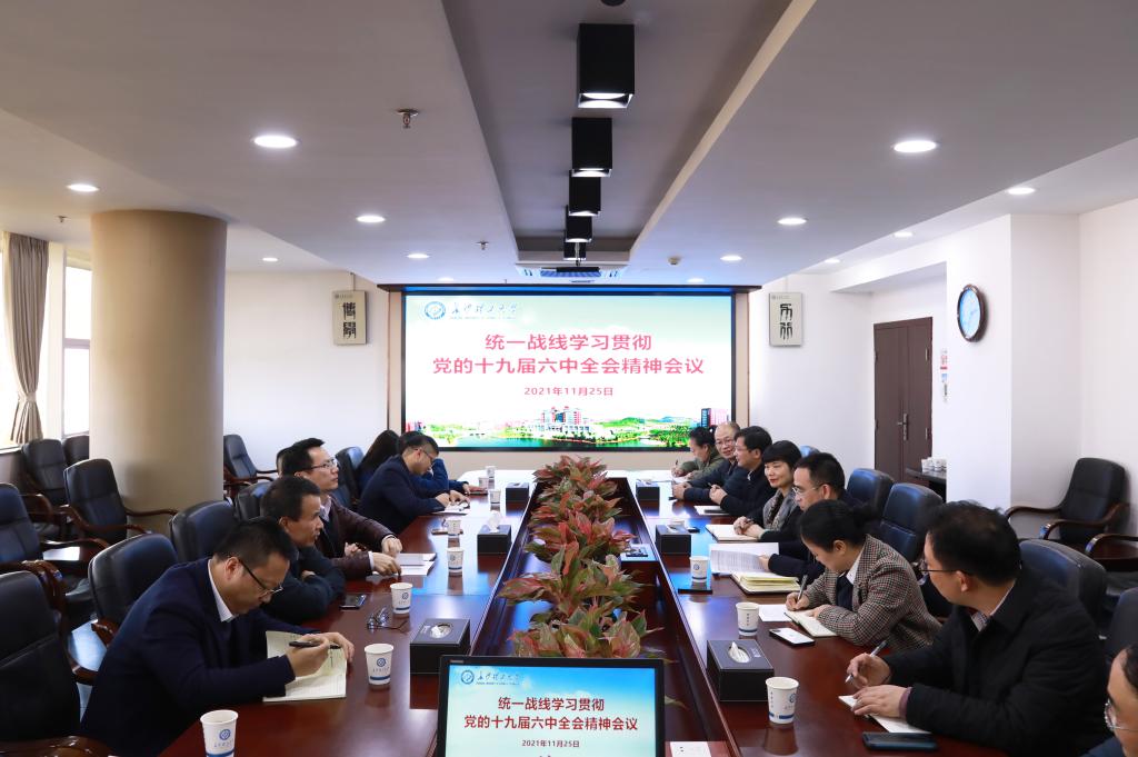 11月25日,学校统一战线召开会议深入学习党的十九届六中全会精神,党委委员、副校长、统战部部长蒋璟萍出席,会议由统战部常务副部长黄自力主持,各民主党派和统战团体负责人参加了会议。