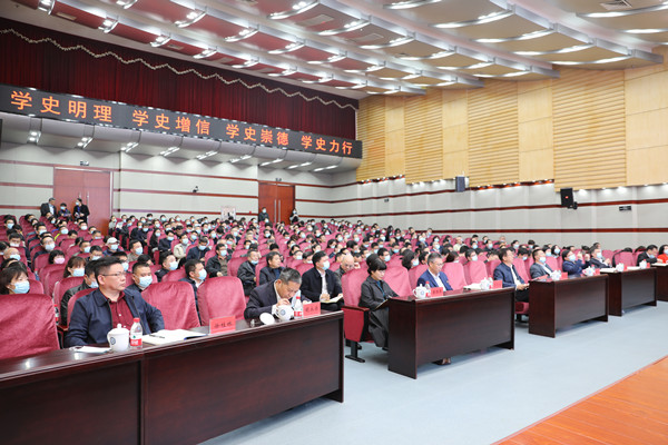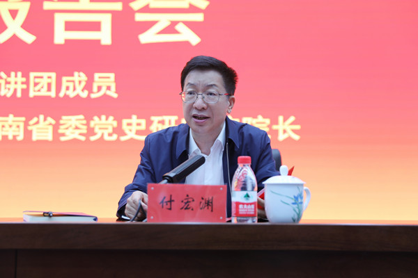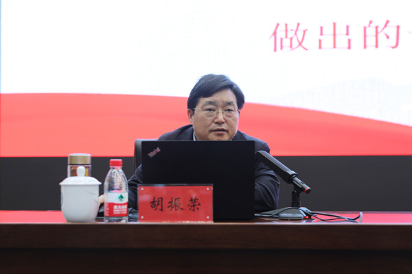4月13日下午,党史学习教育省委宣讲团在开云官网举行宣讲报告会,省委宣讲团成员、中共湖南省委党史研究院院长胡振荣作宣讲报告。校党委书记付宏渊主持报告会并讲话。