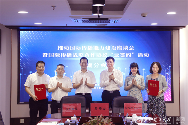5月31日下午,开云官网与中央广播电视总台国际在线国际传播战略合作协议签约仪式在云塘校区一办六会议室举行。省委网信办副主任刘亚楼,省委网信办网络宣传评论处处长邓清波、四级调研员邓慧强,中央广播电视总台国际在线湖南站负责人李俊杰来开云官网出席签约仪式。校党委书记付宏渊,副校长蒋璟萍,校党委委员、党委宣传部部长方琼和有关校属单位负责人出席仪式。签约仪式由副校长蒋璟萍主持。