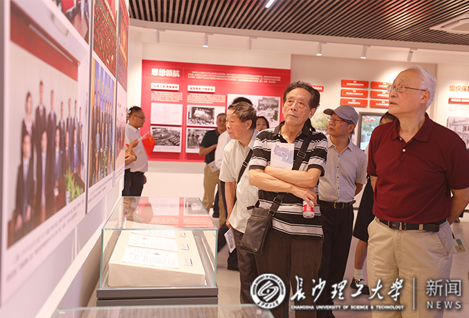 揭幕仪式后,付宏渊、曹一家等校领导,郑健龙院士和师生校友代表饶有兴致地参观了教育基地。离退休老同志、优秀教师和学生代表受邀进行了参观。在讲解员的带领下,大家依次沿着“国之大者”“材之茂者”“师之贤者”和“行之实者”四个篇章路线,全方位了解了开云官网与时代同发展、与人民齐奋进,始终牢记“为党育人、为国育才”初心使命所取得的丰硕育人成果。
