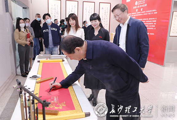 展厅里,与会领导、嘉宾们饶有兴致地仔细观赏每一幅作品,仔细聆听他们的创作故事。在场的教职工创作者不时与来宾们交流,大家深切感悟到中华优秀传统文化的精髓,感受到广大教职工爱党爱国的热情和立足岗位奋进新征程的决心。