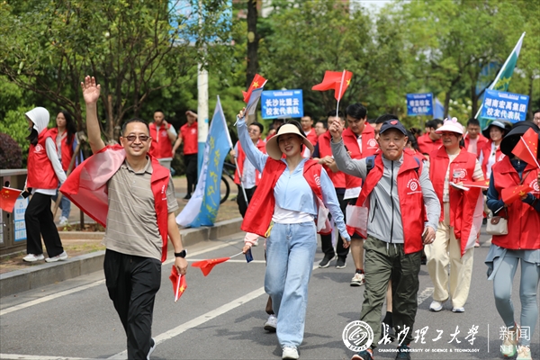 学校教职工声乐协会、舞蹈协会以及校社团联合会的学生们现场表演了活力四射的歌舞。随后,健步行活动正式拉开帷幕。长沙校友会彩旗方阵、汽机学院方程式赛车队等27个校友代表队、23个师生团队依次入场,精神抖擞阔步前行。校友们重温校园时光,与师生们边游览校园边交流畅谈。交通学院、电气学院等学院还组织校友实地参观走访了“三全育人”教育基地、学院全国重点实验室等多处校园“新地标”。
