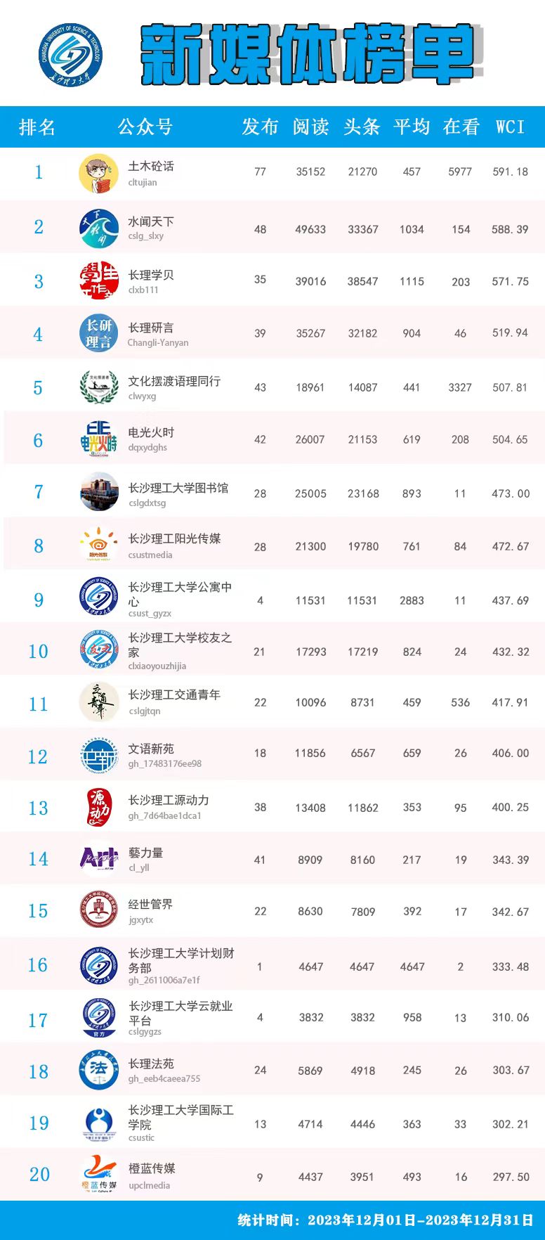 校属单位微信公众号排名(2023年12月)