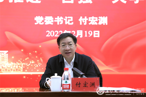 付宏渊强调,要持续深入贯彻落实党的十九届六中全会、省第十二次党代会精神,全面落实学校第四次党代会精神,进一步思考“建设一个什么样的理工大学,怎样建设理工大学”,全校各级党组织和广大干部必须深入学习,结合当前形势和学校中心工作,弄清楚我们面临的主要矛盾,进一步统一思想、提高认识、增强干劲,围绕既定任务,在2022年把工作干得更有成效。