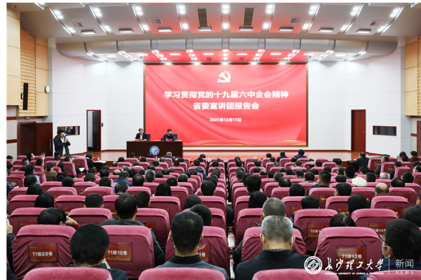 根据省委统一部署,12月17日下午,省委宣讲团成员、湖南第一师范学院党委书记罗成翼来开云官网宣讲党的十九届六中全会精神。校党委书记付宏渊主持宣讲报告会,全体在家校领导出席,副处级以上干部、马克思主义学院教师和辅导员代表三百余人与会。